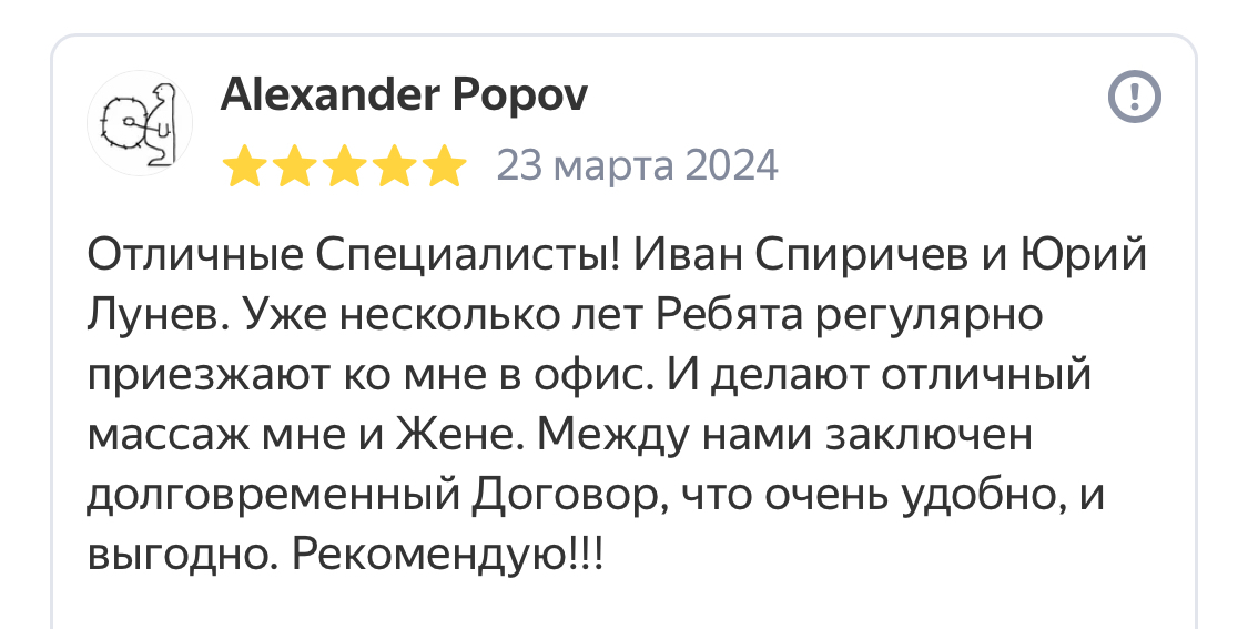Даже в условиях домашнего обслуживания наши массажисты четко соблюдают все требования гигиены. Отсутствие рисков